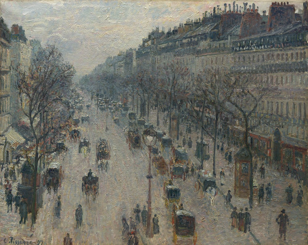 The Boulevard Montmartre on a Winter Morning (1897) by Camille Pissarro